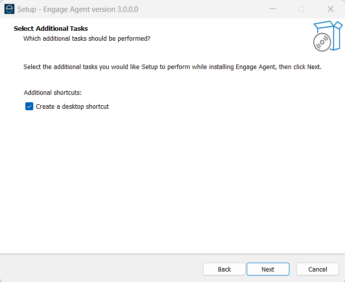 The installer will ask you to confirm the install location, as well as giving you a choice whether or not to put a shortcut on the desktop, click through these pages and the agent will then install.