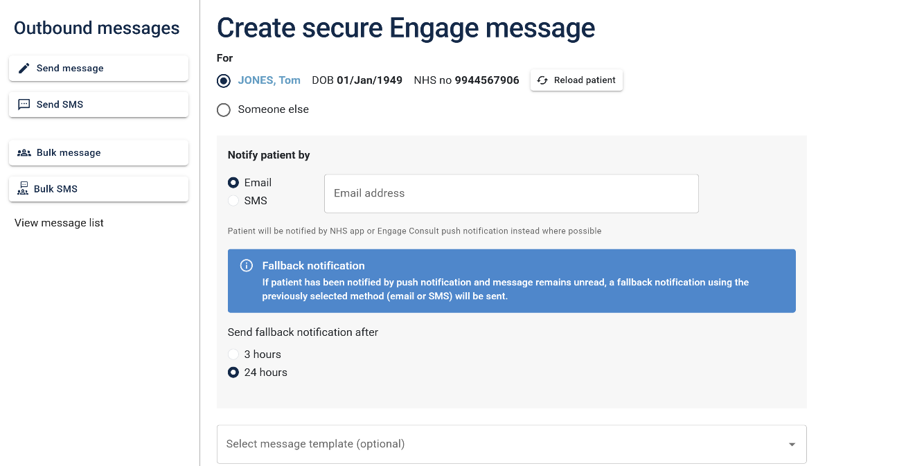 If necessary, you can easily select to send the message to someone else and search for the patient required. The new, improved user interface, presented on a single page, enables a more streamlined experience with fewer clicks.