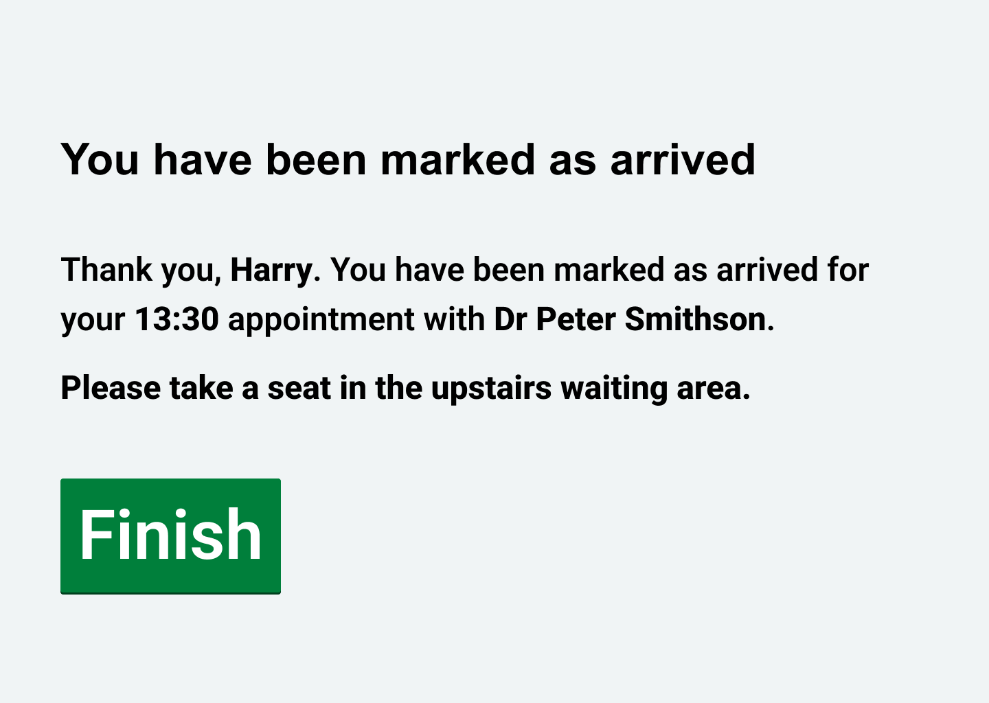 You told us that patients don't always notice the waiting area instructions, so we've made a small tweak to highlight these in a bold font: