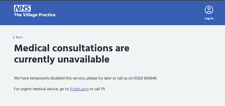 We've amended the text displayed to your patients should you disable your online services, just to make it clear that the service is temporarily unavailable rather than a technical error: