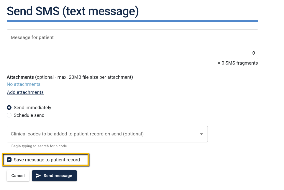 You can now prevent individual SMS from being saved to the patient's record.